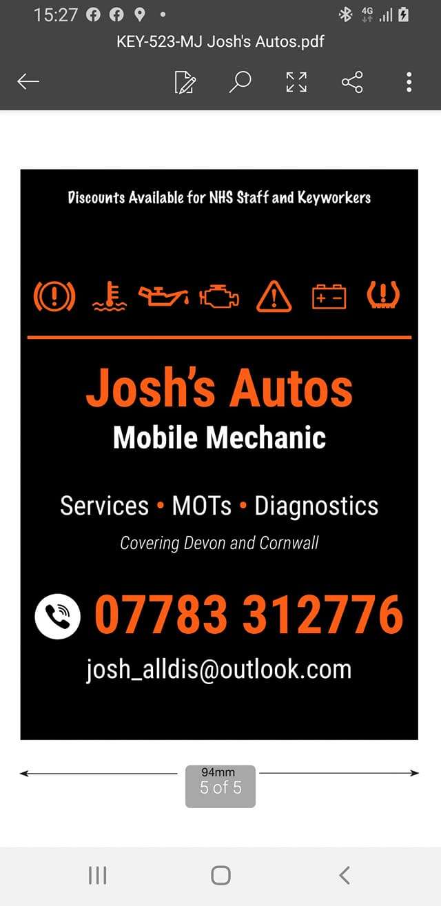 Welcome to Josh’s Autos Ltd, based in Saltash but covering all of Devon and Cornwall. I am a mobile mechanic with extensive experience, offering a wide variety of services. Take a look at the list below for some examples of the types of work I carry out: